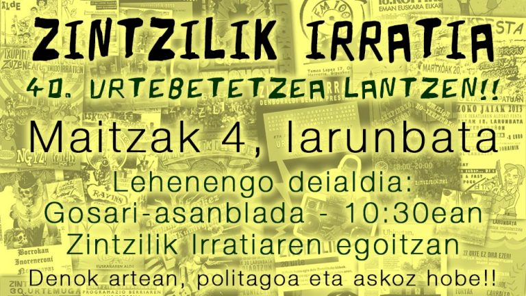 Kaixo, 40 urte hauetan zehar Zintzilik Irratian ibili baldin bazea, irratsaioren bat egin baduzu edo besterik gabe, lagundu nahi baduzu: […]