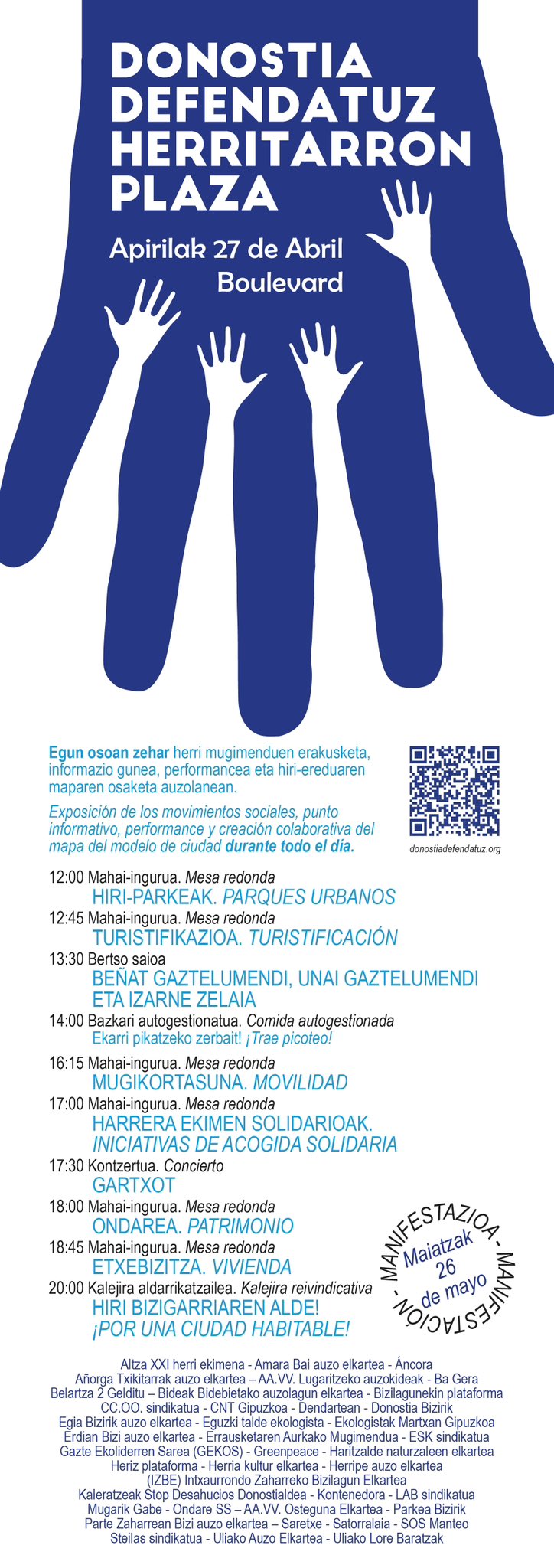 DONOSTIA DEFENDATUZ, HERRITARRON PLAZA! Manifestazioa: maiatzak 26, igandea (Donostian)