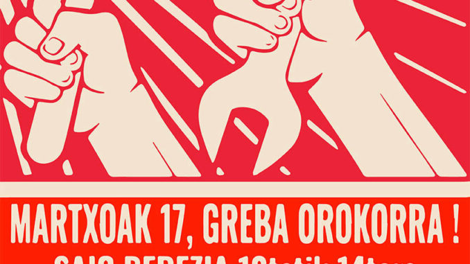 Greba orokorra prekaritateari aurre egiteko, lan- eta bizi-baldintzak hobetzeko eta aberastasunaren banaketa bidezkoagoa aldarrikatzeko deitu da. Besteak beste, 1.500 euroko gutxieneko soldata ezartzea eskatzen da.